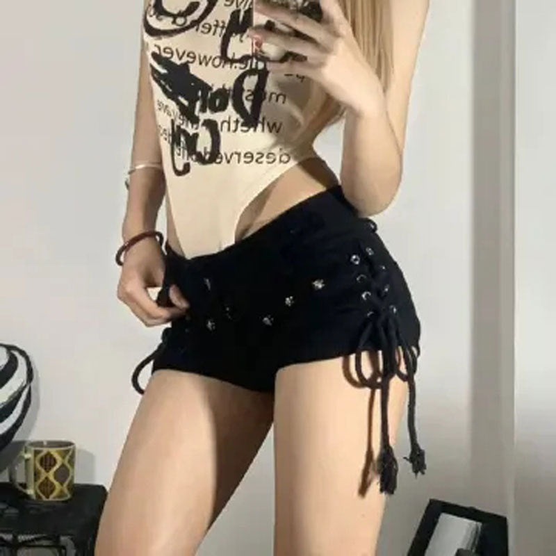 American Vibe Retro Tight Denim Shorts Lace-up Design Sense Hot Girl Slimming Hot Hip Pants