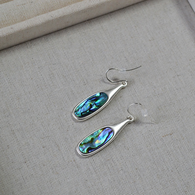 Retro Silver Inlaid Colorful Abalone Shell Personality Simple